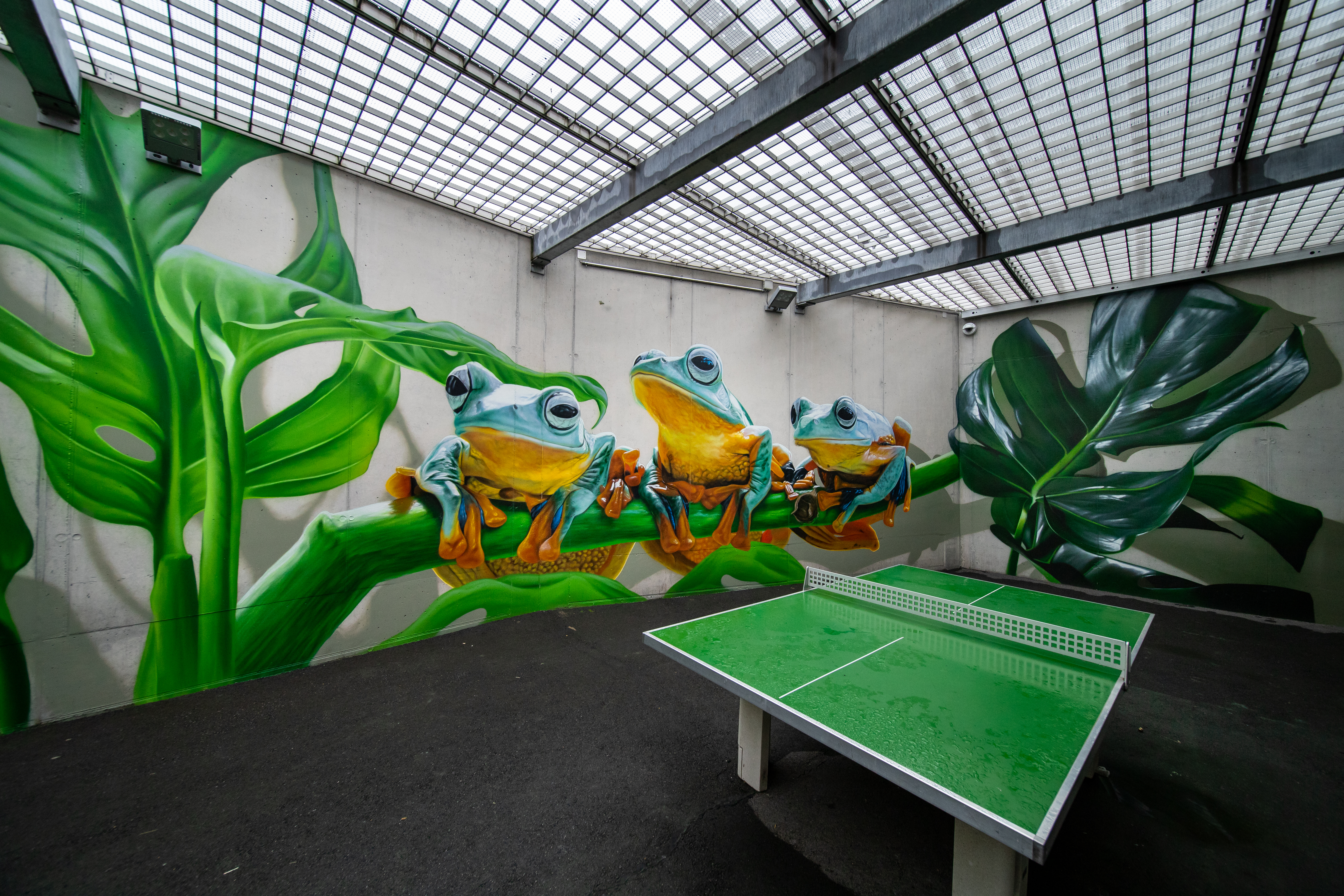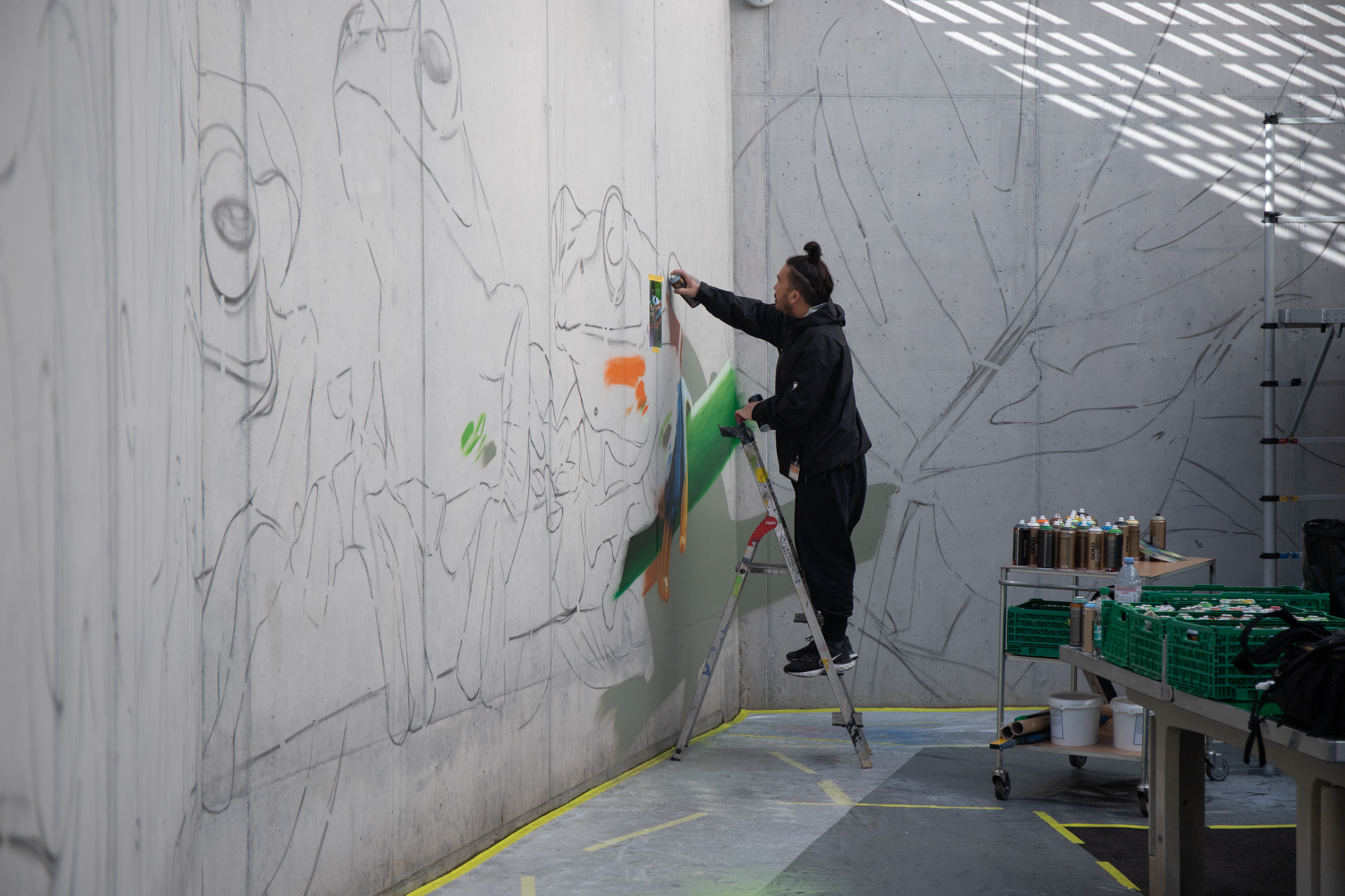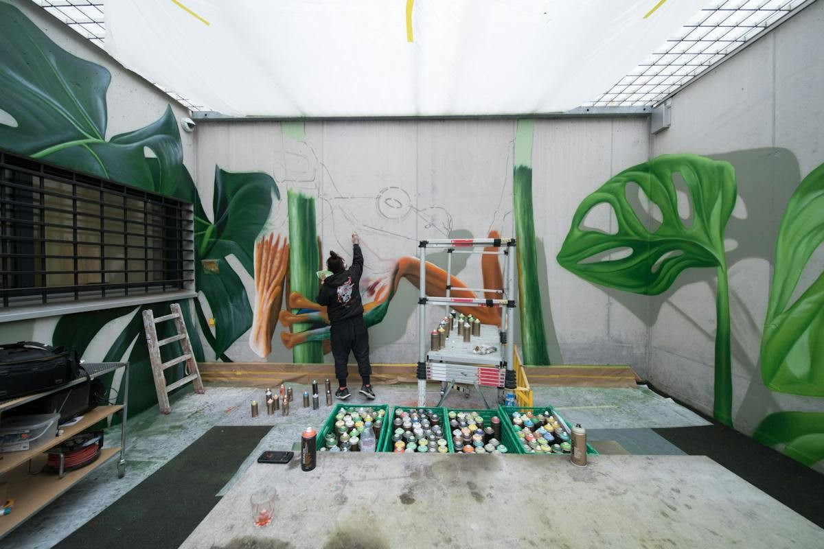 Neue Wandgestaltung zweier Spazierhöfe durch Fabian "Bane" Florin